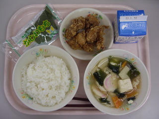 1年生給食2日目。今は5年生のお兄さん・お姉さんが準備をしてくれています。今日もよく食べられていましたが、デザートの柏餅もあったため、時間に追われてしまった子もいたようです。限られた時間の中で食べる給食なので、時間を見ながらペースよく食べられるように慣れていくことも必要です。明日から連休です。新学期が始まってからの緊張がほぐれて疲れがでやすくなったり、休みで生活リズムが崩れがちです。『早寝早起き』朝ごはんをしっかり食べて7日元気に登校しましょう。
