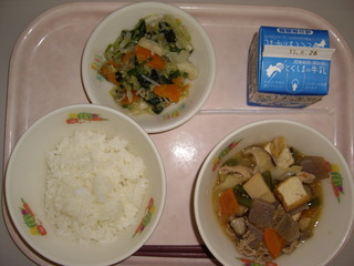 米飯♪牛乳♪厚揚げと豚肉のみそ煮♪ちぐさあえ♪エネルギー654kcal,たんぱく質28.3g,脂質17.8g