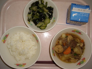 米飯♪牛乳♪肉じゃが♪ちりめん和え♪エネルギー704kcal、たんぱく質24.4g,脂質22.5g