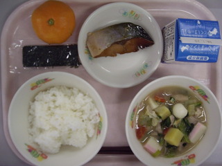 米飯♪味付けのり♪牛乳♪ぶりの照り焼き♪雑煮♪みかん♪エネルギー812kcal、たんぱく質28.0g、脂質17.1g