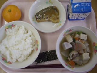 米飯♪味付けのり♪牛乳♪さばの味噌煮♪けんちん汁♪みかん♪エネルギー701kcal、たんぱく質28.0g、脂質18.8g