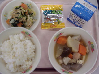 玄米ご飯♪牛乳♪おでん♪ゆず酢あえ♪とっとチーズ♪エネルギー672kcal、たんぱく質26.8g、脂質21.6g