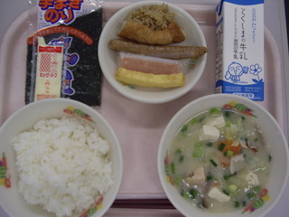 手巻きごはん♪牛乳♪石狩汁♪エネルギー756kcal、タンパク質32.0g、脂質20.9g