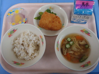 麦ご飯♪はもフライ♪枝豆♪そうめん汁♪七夕ゼリー♪牛乳♪エネルギー725kcal、たんぱく質27.8g、脂質17.9g