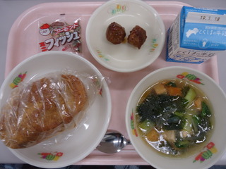 きなこ揚げパン♪牛乳♪ミートボール♪中華スープ♪小魚アーモンド♪エネルギー707kcal、たんぱく質25.8g、脂質27.9g