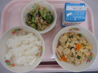 米飯♪牛乳♪高野豆腐の卵とじ♪酢の物♪エネルギー678kcal、たんぱく質31.0g、脂質18.6g