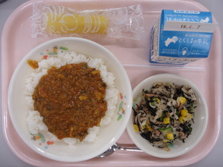 ドライカレー(米飯)♪切り干し大根のサラダ♪パインアップル♪エネルギー686kcal、たんぱく質23.1g、脂質20.3g