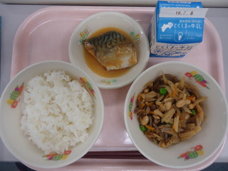 米飯♪牛乳♪大豆入りきんぴら♪さばのすだち味噌煮♪エネルギー775kcal、たんぱく質29.3g、脂質26.7g