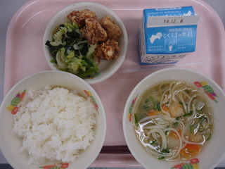 米飯♪若鶏の竜田揚げ♪おひたし♪そうめん汁♪エネルギー727kcal、たんぱく質29.1g、脂質22.7g