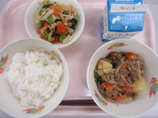 米飯♪肉じゃが♪ゆず酢あえ♪牛乳♪エネルギー723kcal、たんぱく質23.8g、脂質22.5g