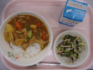 秋カレーライス(米飯)♪ひじき入りサラダ♪牛乳♪エネルギー719kcal、たんぱく質24.5g、脂質19.5g