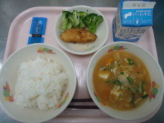 米飯♪メルルーサのすだち風味♪ゆでブロッコリー♪味噌汁♪牛乳♪エネルギー747kcal、たんぱく質33.7g、脂質23.0g