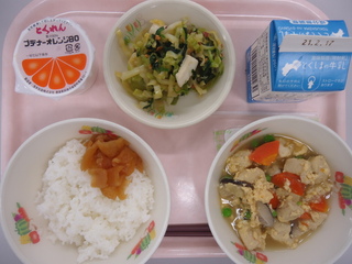米飯♪つぼ漬♪高野豆腐の卵とじ♪ピーナッツ和え♪みかんゼリー♪牛乳♪エネルギー730kcal、たんぱく質31.3g、脂質18.3g