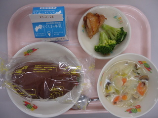 ココアパン♪白菜ときのこのクリーム煮♪鶏肉の照り焼き♪ゆでブロッコリー♪エネルギー710kcal、たんぱく質28.8g、脂質26.2g