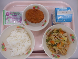 米飯♪ごまひじき♪ほいこうろう♪ポテトコロッケ♪牛乳♪エネルギー804kcal、たんぱく質27.6g、脂質27.5g