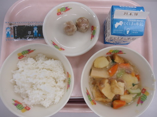 米飯♪味付けのり♪厚揚げとじゃがいもの中華風♪しゅうまい♪牛乳♪エネルギー737kcal、たんぱく質25.7g、脂質23.3g