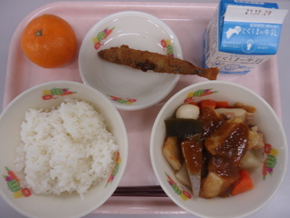 米飯♪ゆずみそおでん♪子持ちししゃもフライ♪みかん♪牛乳♪エネルギー786kcal、たんぱく質29.2g、脂質22.3g