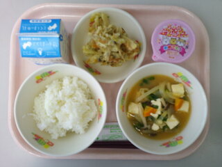かわいい1年生が入学してきました。わくわく、うれしい気持ちで給食を食べて、1年生のご入学をお祝いしました。