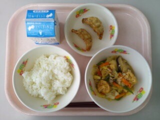 ごはん♪回鍋肉♪ぎょうざ♪牛乳♪