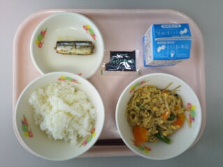 ごはん♪ひじきのり♪さんまのおかか煮♪切り干し大根の卵とじ♪牛乳♪