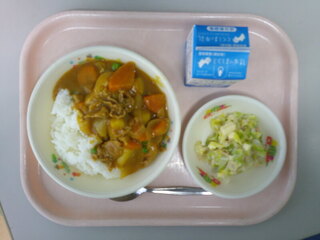 カレーライス(ごはん)♪シーチキンサラダ♪牛乳♪