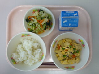 麦ごはん♪高野豆腐の卵とじ♪ちぐさ和え♪牛乳♪