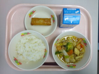 ごはん♪八宝菜♪春巻き♪牛乳♪