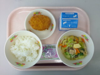 ごはん♪ごまひじき♪野菜炒め♪ポテトコロッケ♪牛乳♪