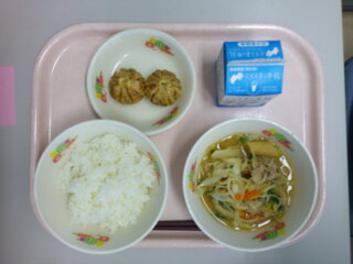 ごはん♪味噌ラーメン♪ターサイパオズ♪牛乳♪