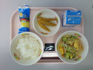 ごはん♪ひじきのり♪ばんさんすう♪きびなごカリカリフライ♪パイン♪牛乳♪