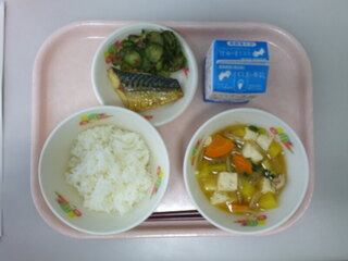 ごはん♪さばの塩焼き♪かつおきゅうり♪さつま汁♪牛乳♪