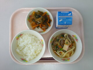 ごはん♪五目うどん♪あじの南蛮漬け♪牛乳♪