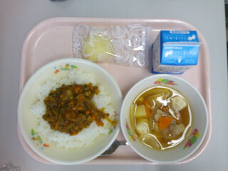 ドライカレー(ごはん)♪ポテトスープ♪梨♪牛乳♪