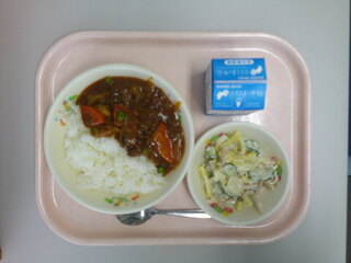 ハヤシライス(ごはん)♪マカロニサラダ♪牛乳♪