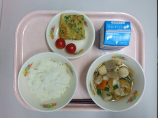 ごはん♪いもたき♪ねぎ焼き♪ミニトマト♪牛乳♪
