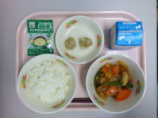 ごはん♪のりふりかけ♪酢豚♪しゅうまい♪牛乳♪