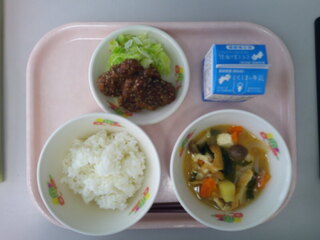 ごはん♪豚肉のごまがらめ♪ゆでキャベツ♪さつまいもの味噌汁♪牛乳♪