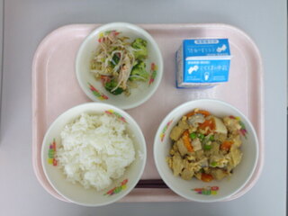 ごはん♪高野豆腐の卵とじ♪酢の物♪牛乳♪