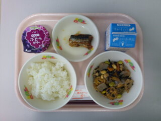 ごはん♪ひじきの炒め煮♪いわしのトマト煮♪ぶどうゼリー♪牛乳♪