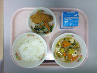 ごはん♪ぶりフライ♪ほうれん草のごま和え♪さつま汁♪牛乳♪