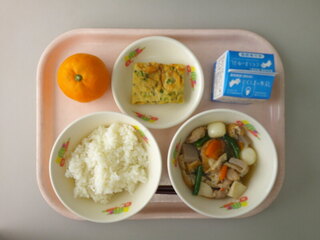 ごはん♪いもたき♪ねぎ焼き♪みかん♪牛乳♪