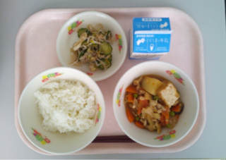 ごはん♪じゃがいものそぼろ煮♪梅酢和え♪牛乳♪