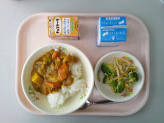 カレーライス(ごはん)♪ブロッコリーのサラダ♪クリスマスチョコケーキ♪牛乳♪