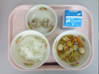 ごはん♪牛乳♪八宝菜♪ポークしゅうまい♪