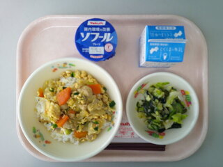 親子丼(麦ごはん)♪ちりめん和え♪ヨーグルト♪牛乳♪