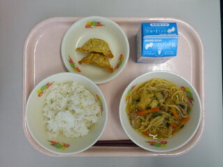 牛乳♪麦ごはん♪味噌ラーメン♪ぎょうざ♪