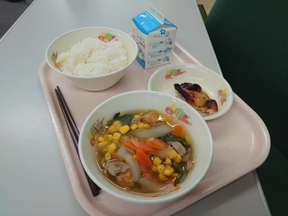 ごはん 牛乳 鶏肉の塩麹焼き はるさめスープ