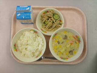 ごはん 牛乳 クラムチャウダー ごぼうサラダ
