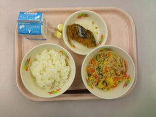ごはん 牛乳 さばのカレー揚げ バンサンスー キャンディーチーズ