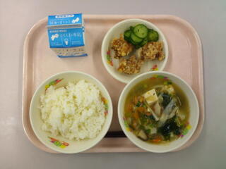 ごはん 牛乳 とり肉のからあげ きゅうりのかおりあえ ふしめん汁